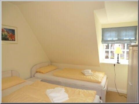 Blick in das Schlafzimmer mit zwei Einzelbetten
