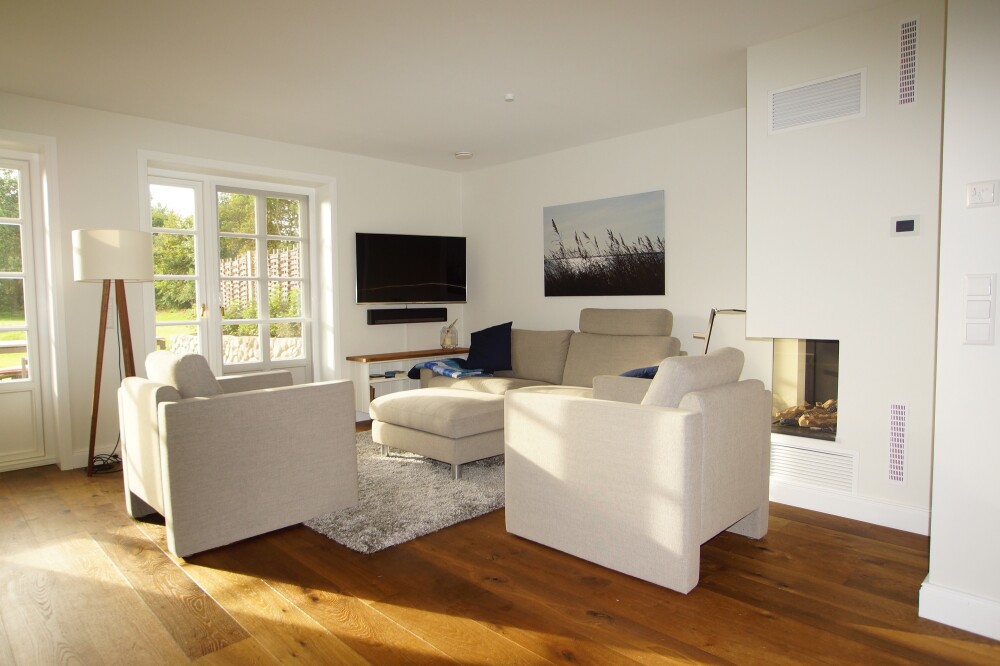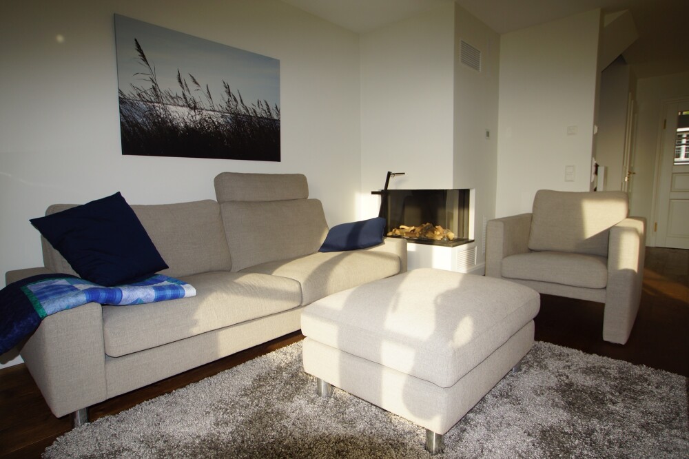 Das gemütliche Wohnzimmer mit Kamin (Gas)
