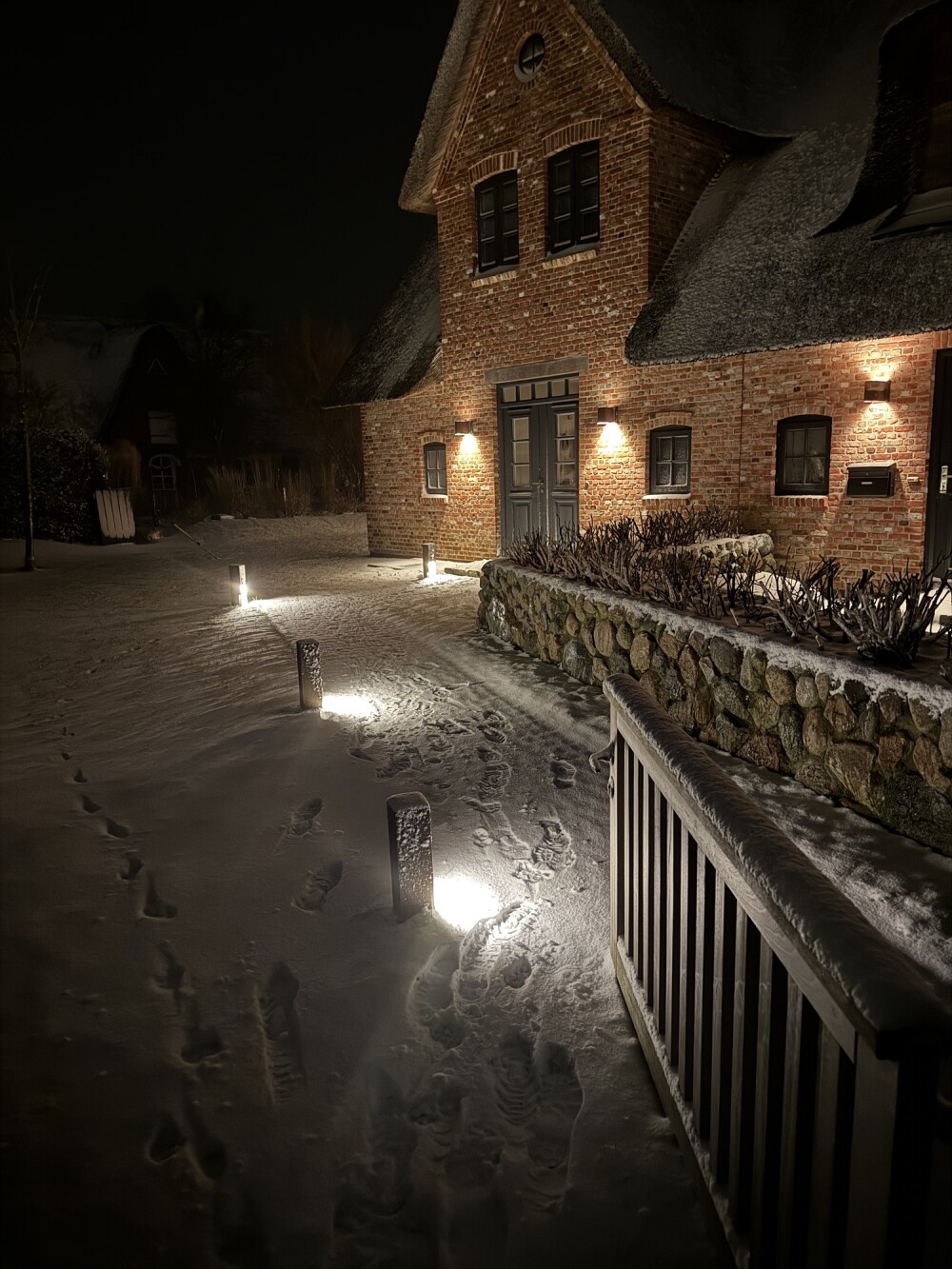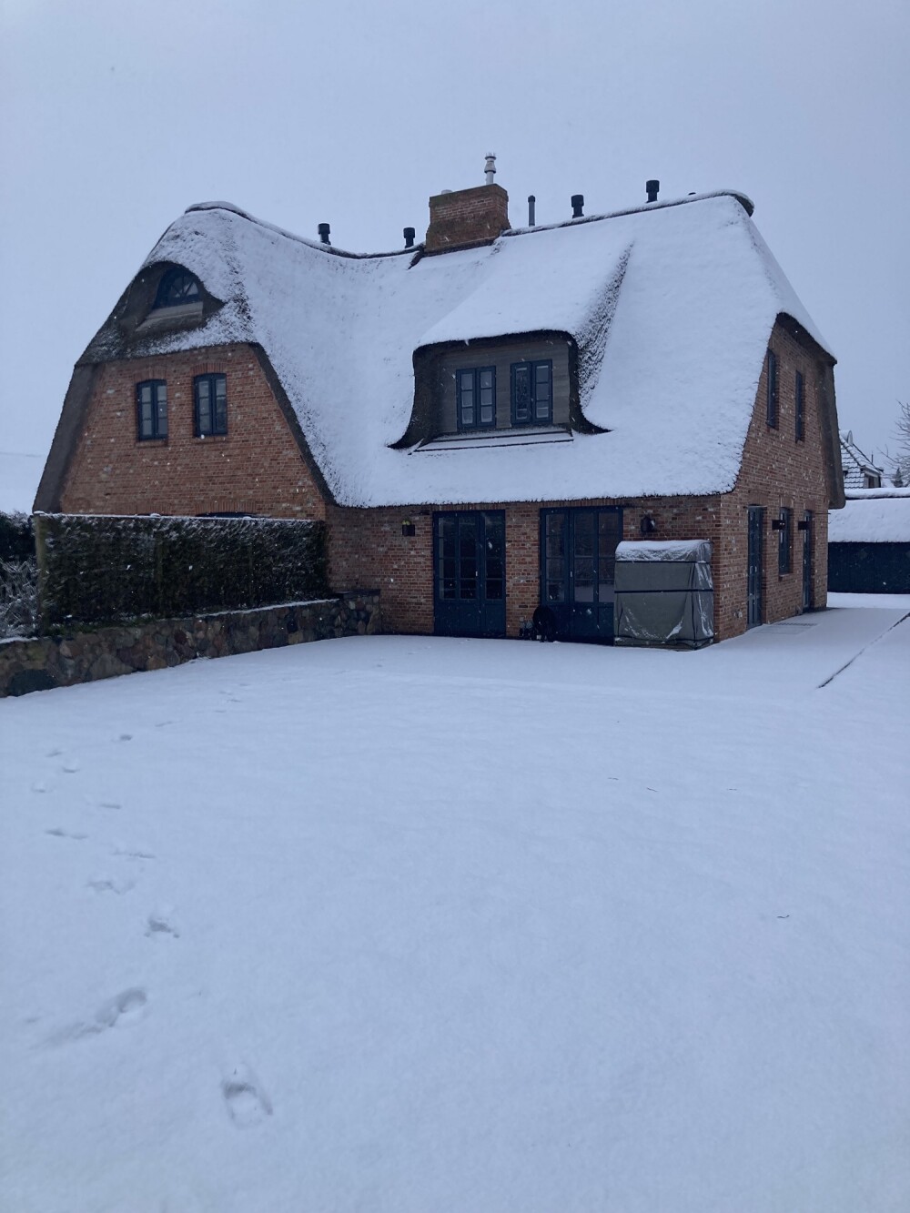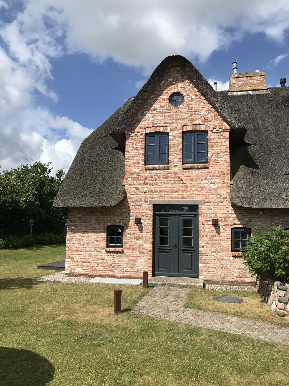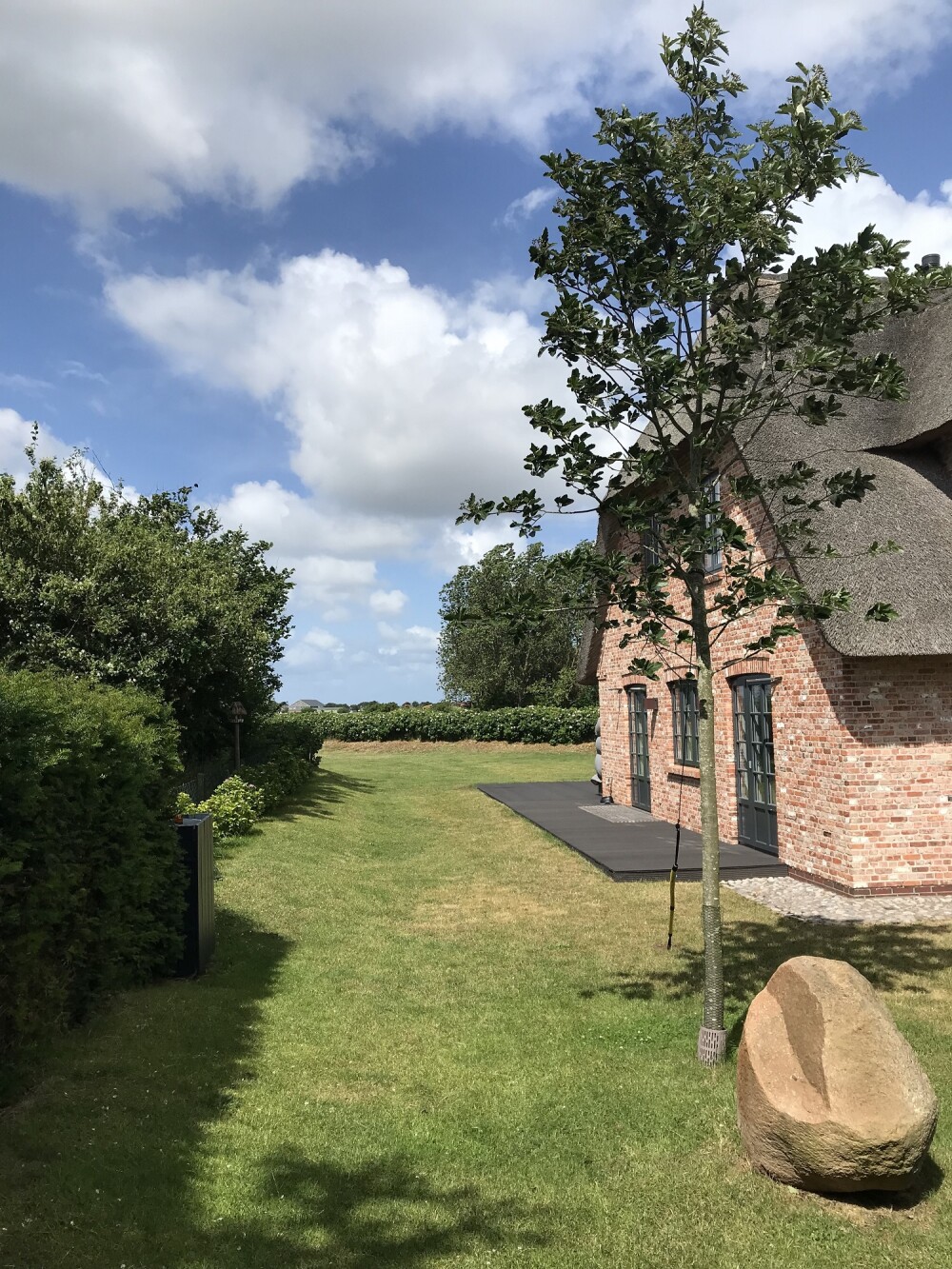 Das Bröns Hüs wurde als reetgedeckte Doppelhaushälfte im Jahre 2017 mit einer Wohnfläche von ca. 100 qm fertiggestellt und verfügt über einen großen Garten. Der Blick richtet sich auf die Felder und Salzwiesen bis hinüber zur Nachbarinsel Amrum. Der ländlich idyllische Charakter des Bröns Hüs wird durch die dörfliche Wohnstruktur und einen aktiv bewirtschafteten Bauernhof in der direkten Nachbarschaft unterstrichen.