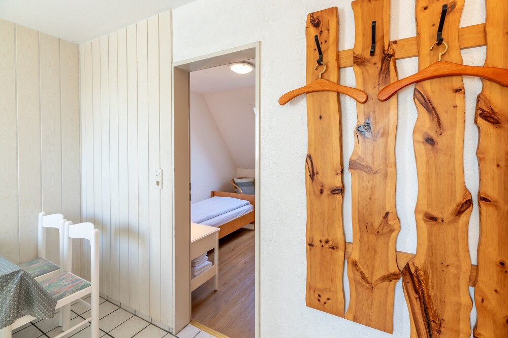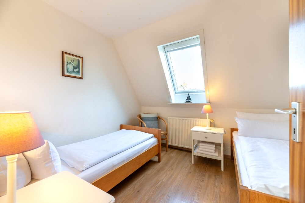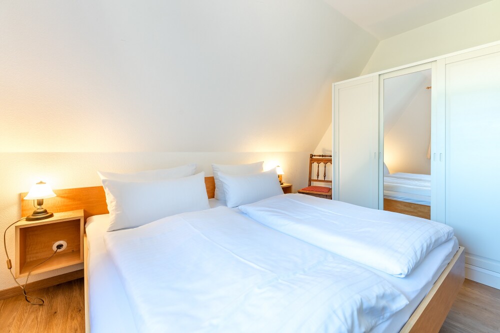 Die charmante Ferienwohnung verfügt über zwei gemütliche Schlafzimmer. Eines mit Doppelbett das andere ist mit zwei kurzen Einzelbetten ausgestattet.