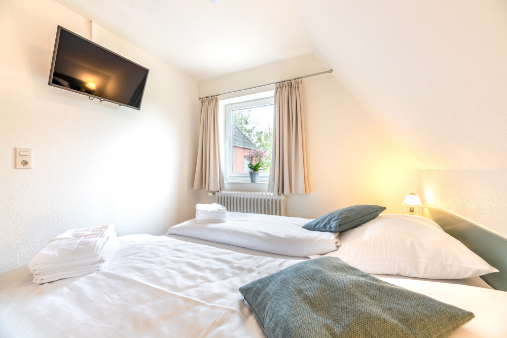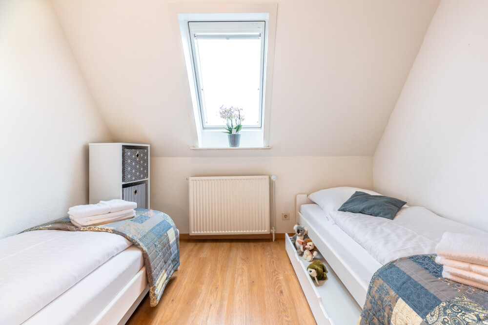 Die charmante Ferienwohnung verfügt über zwei gemütliche Schlafzimmer. Eines mit Doppelbett das andere ist mit zwei Einzelbetten (90x200) ausgestattet.
